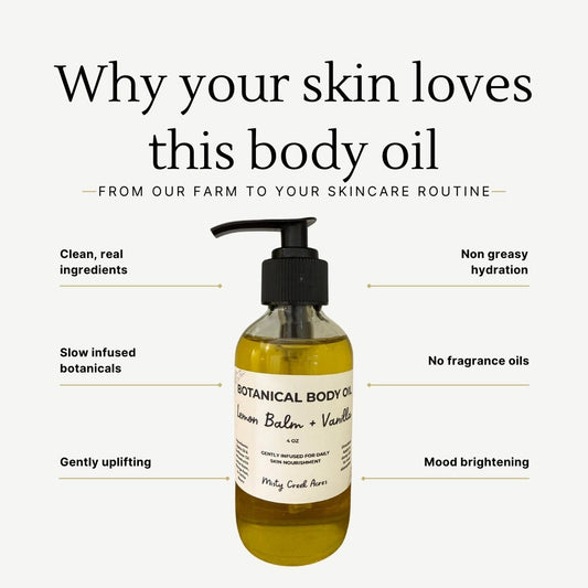 Lemon Balm & Vanilla Botanical Body Oil – Brightening, Comforting Daily Body Oil
