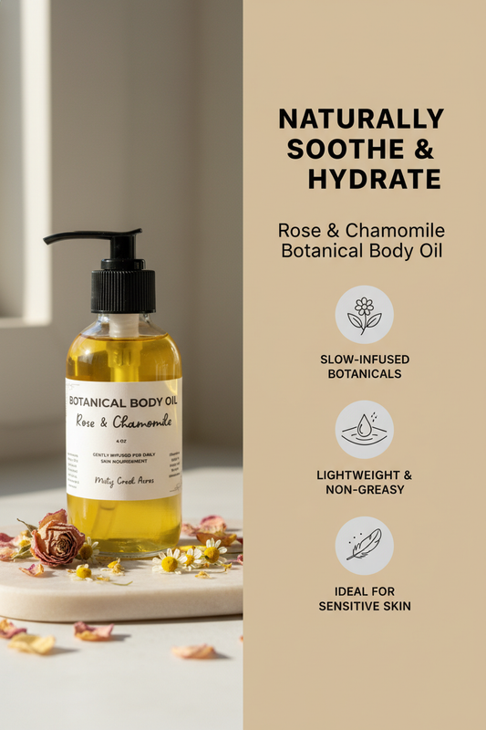 Rose & Chamomile Botanical Body Oil – Natural Hydrating Body Oil for Dry, Sensitive Skin
