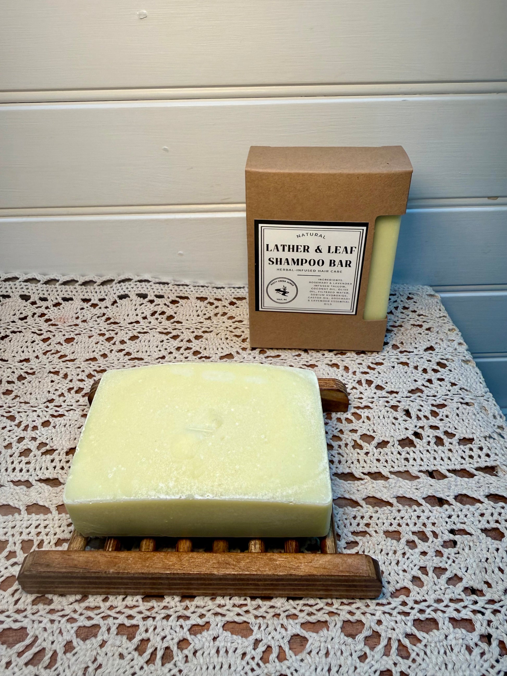 Experience a naturally clean, refreshed scalp with our Lather & Leaf Shampoo Bar, handcrafted with tallow infused with rosemary and lavender, coconut oil, and olive oil for a rich, moisturizing lather. Infused herbs and essential oils work together to gently cleanse, balance, and condition your hair — without stripping away natural oils.