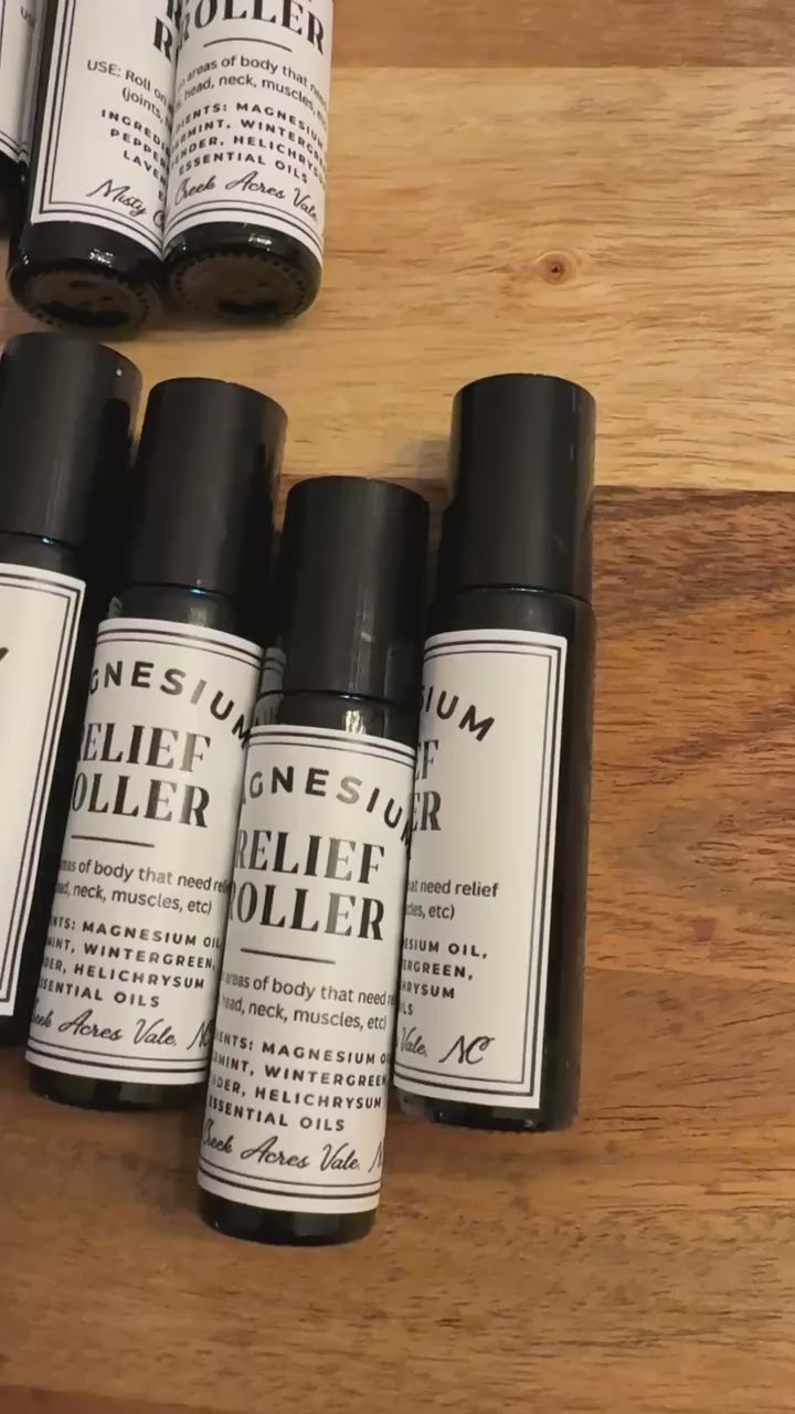 Experience the soothing embrace of our Magnesium Relief Roller, designed to help you find comfort and ease without using the word "pain." This natural remedy is carefully crafted with a blend of magnesium and essential oils, including peppermint, wintergreen, helichrysum, and lavender. Whether it's joint discomfort, muscle tension, or a nagging ache, this roller is here to help you unwind and rejuvenate.