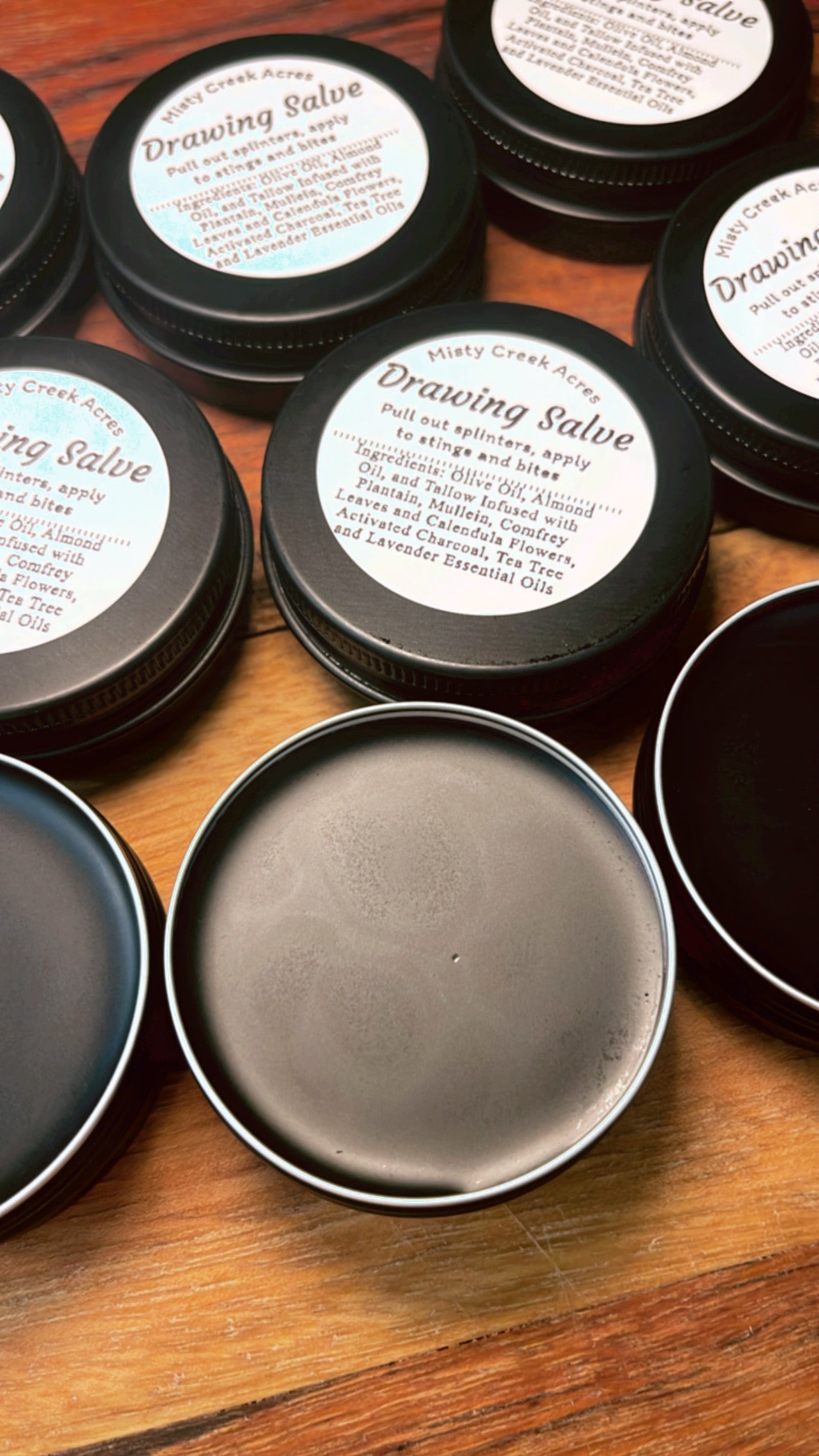 Charcoal-based herbal salve that draws out impurities and soothes bites, bumps, and minor skin issues. -
