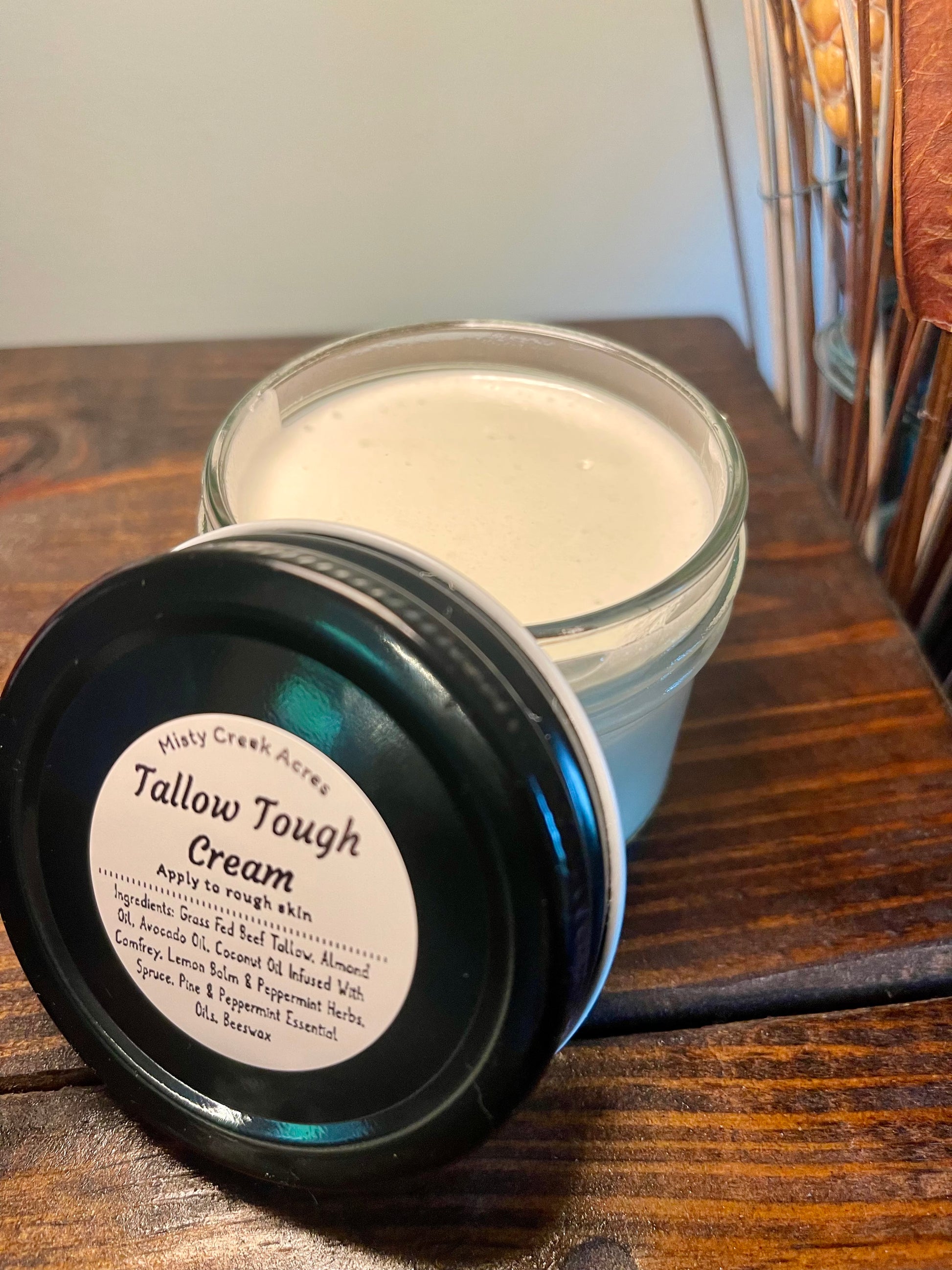 Rich, nourishing hand cream made with grass-fed tallow, peppermint, and pine to repair dry, cracked, overworked hands. -