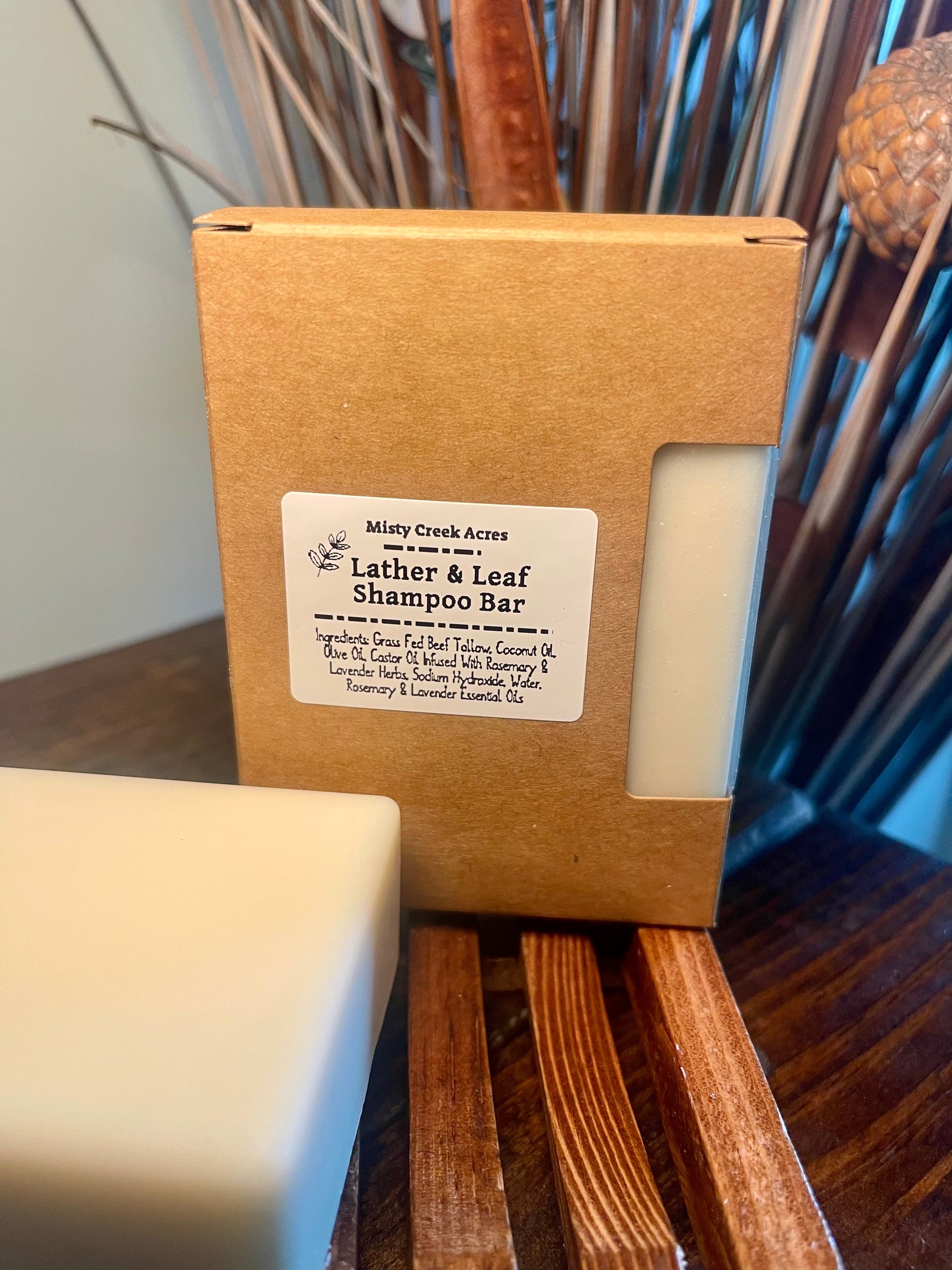 A solid shampoo bar infused with rosemary and lavender for a refreshing, gentle clean — no bottle, no plastic, no waste. -