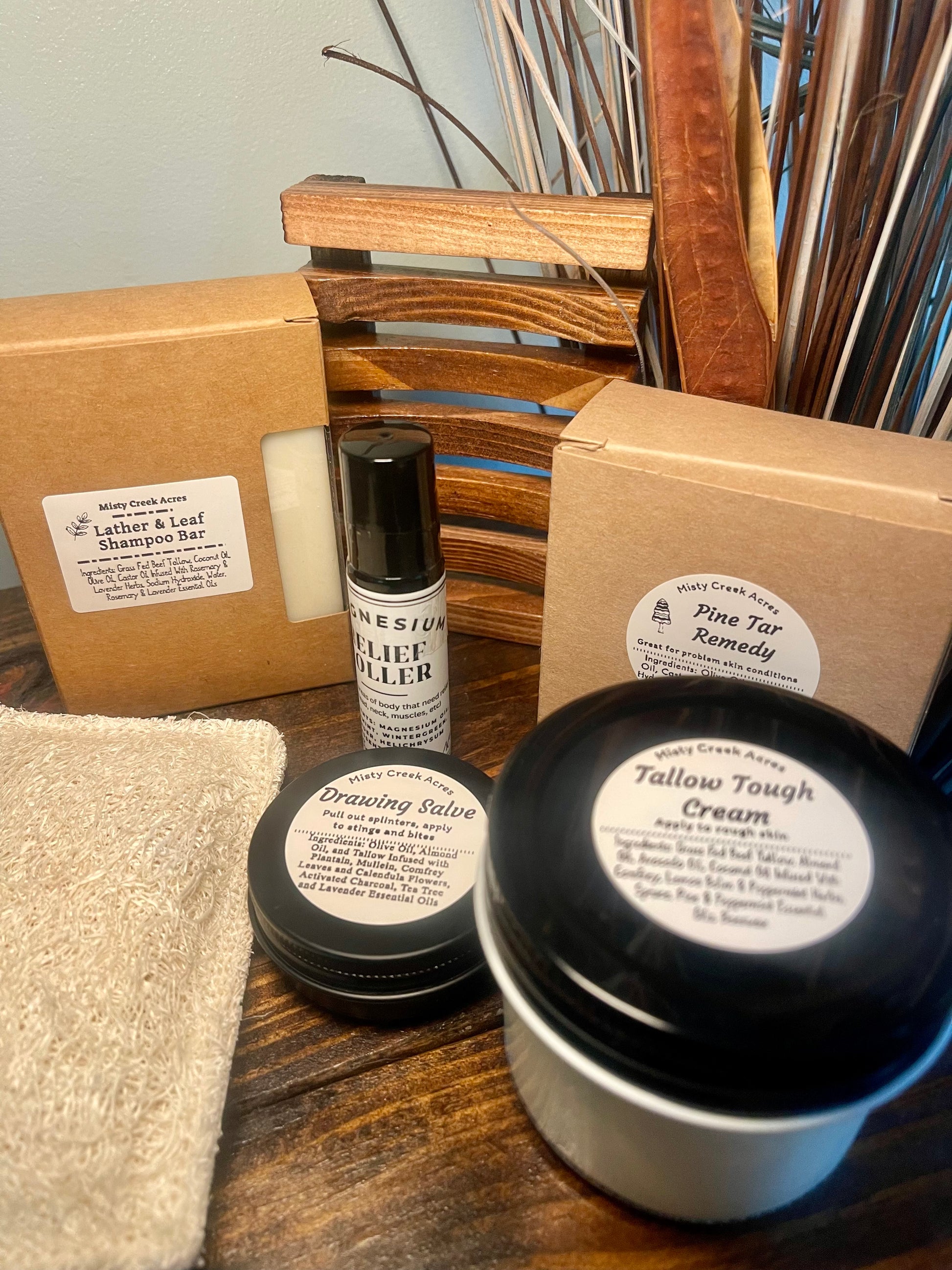 Made with natural, time-tested ingredients like grass-fed tallow, healing herbs, essential oils, and activated charcoal — every product in this collection is built to restore, soothe, and stand up to a long day's work.